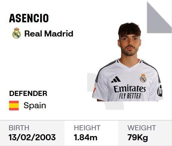 西甲官网显示:22岁中卫劳尔-阿森西奥已正式被提拔到皇马一线队